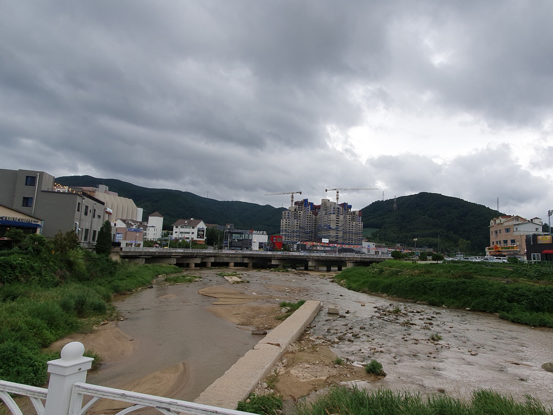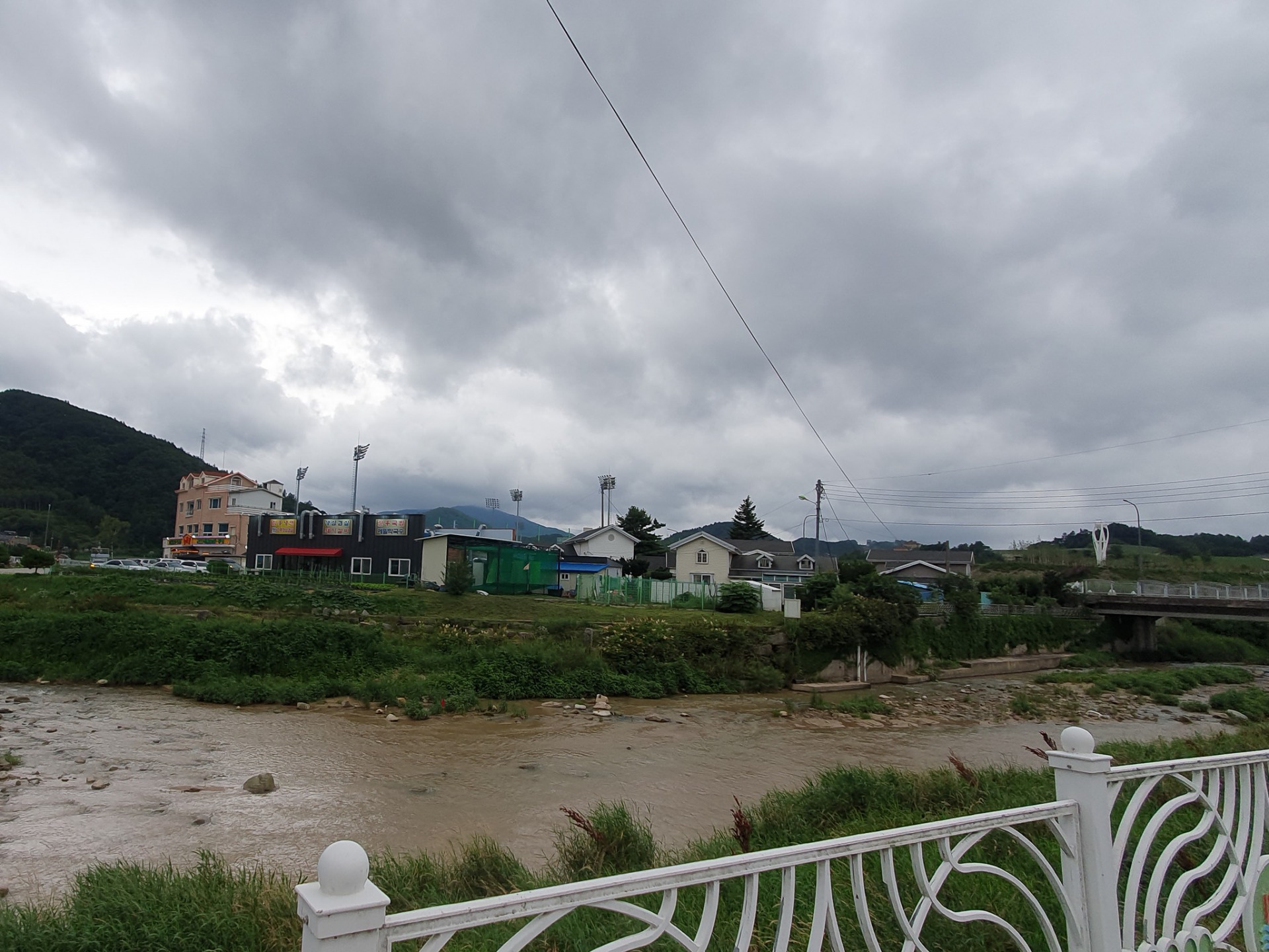 비가 간간히 오던 때라 매우 흐리네요. 까페옆엔 흙탕물강이 흐르고 있었습니다.