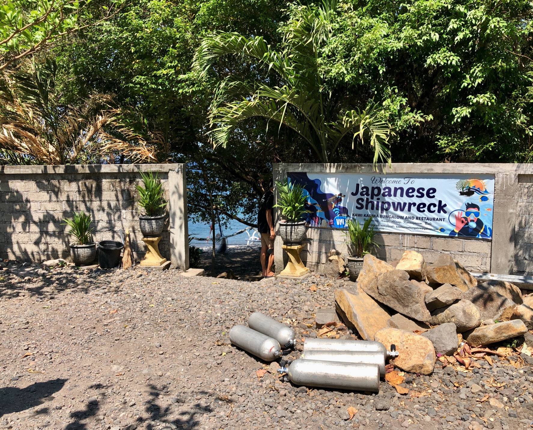 펀다이버에게는 단순히 입수포인트일 뿐인데 해변의 왼쪽으로가면 Amed 포인트(Left Wall), 오른쪽으로가면 Jemeluk Wall 포인트(Right Wall)로 월다이빙을 할 수 있어요.