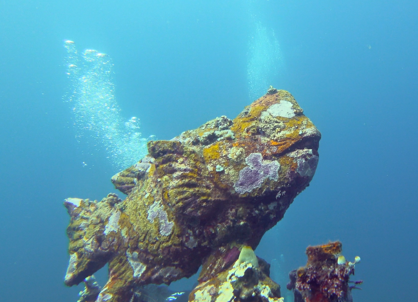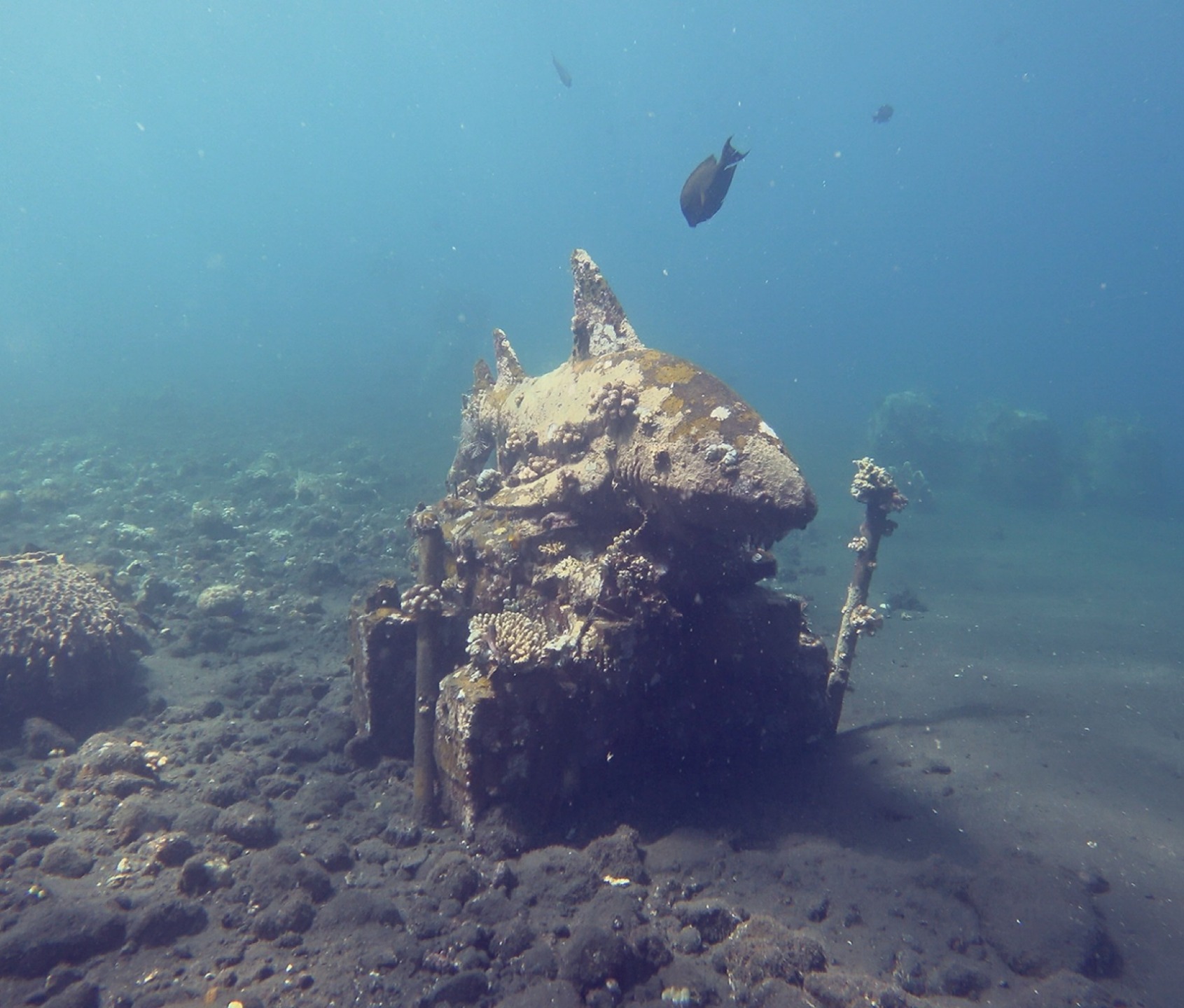 수심 5m에는 석상과 조각, 버려진 베칵(자전거 형태의 인력거. Becak/Pedicab, cycle rickshaw)등이 인공어초로 놓여져있더라고요.
