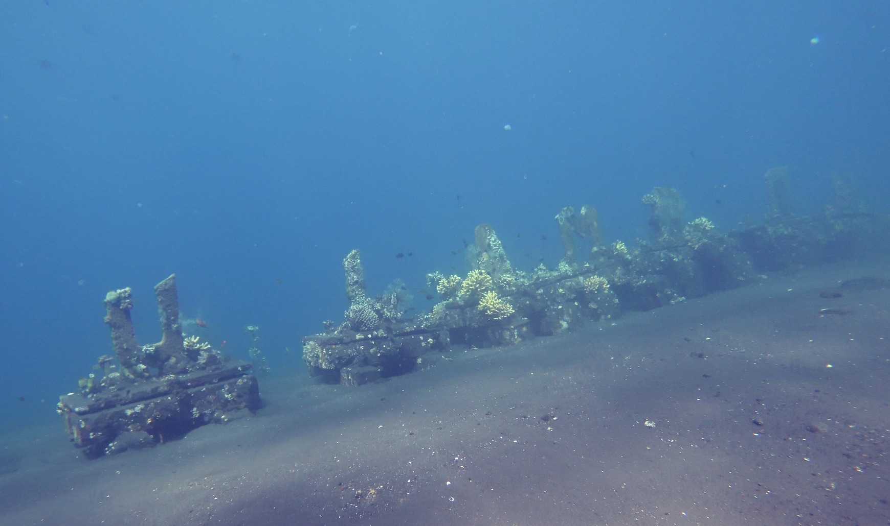 Tulamben bay 중간에 위치한 SUAT 또는 USS 리버티 렉으로 불리는 리버티 호는 120미터 길이의 난파선 잔해인데요. 2차 세계대전 당시 미군 수송선으로 일본 잠수함의 어뢰공격을 받아 무참히 파괴되어 침몰한 배라고해요.