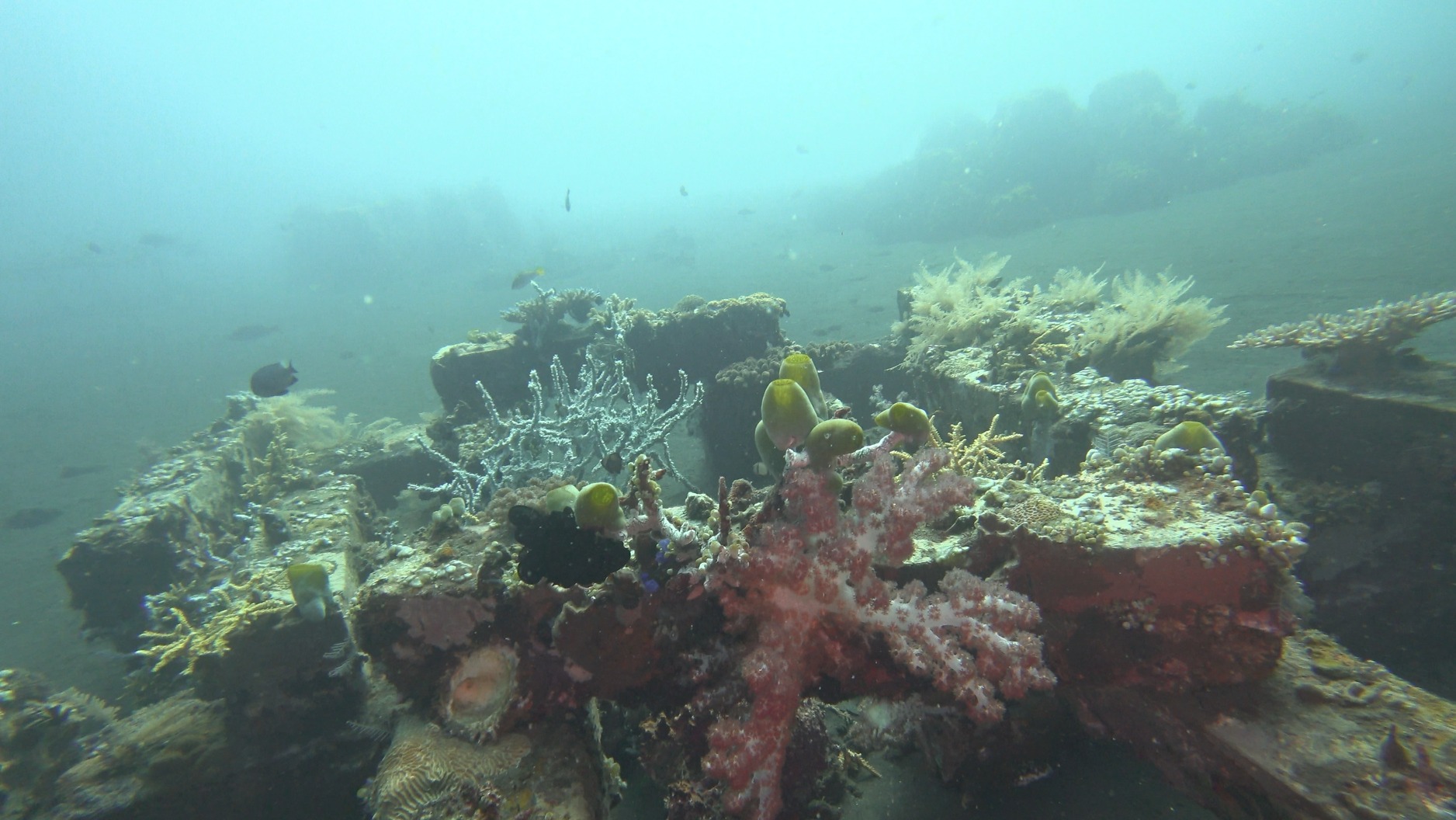 수심도 낮아 수중에서 햇빛이 렉 전체를 비추고, 쉽 전체를 둘러싸 자란 연산호가 서지에 하늘하늘 흔들리며 아름다운 모습을 연출하더군요(Colt Coral, Dendronephthya등).