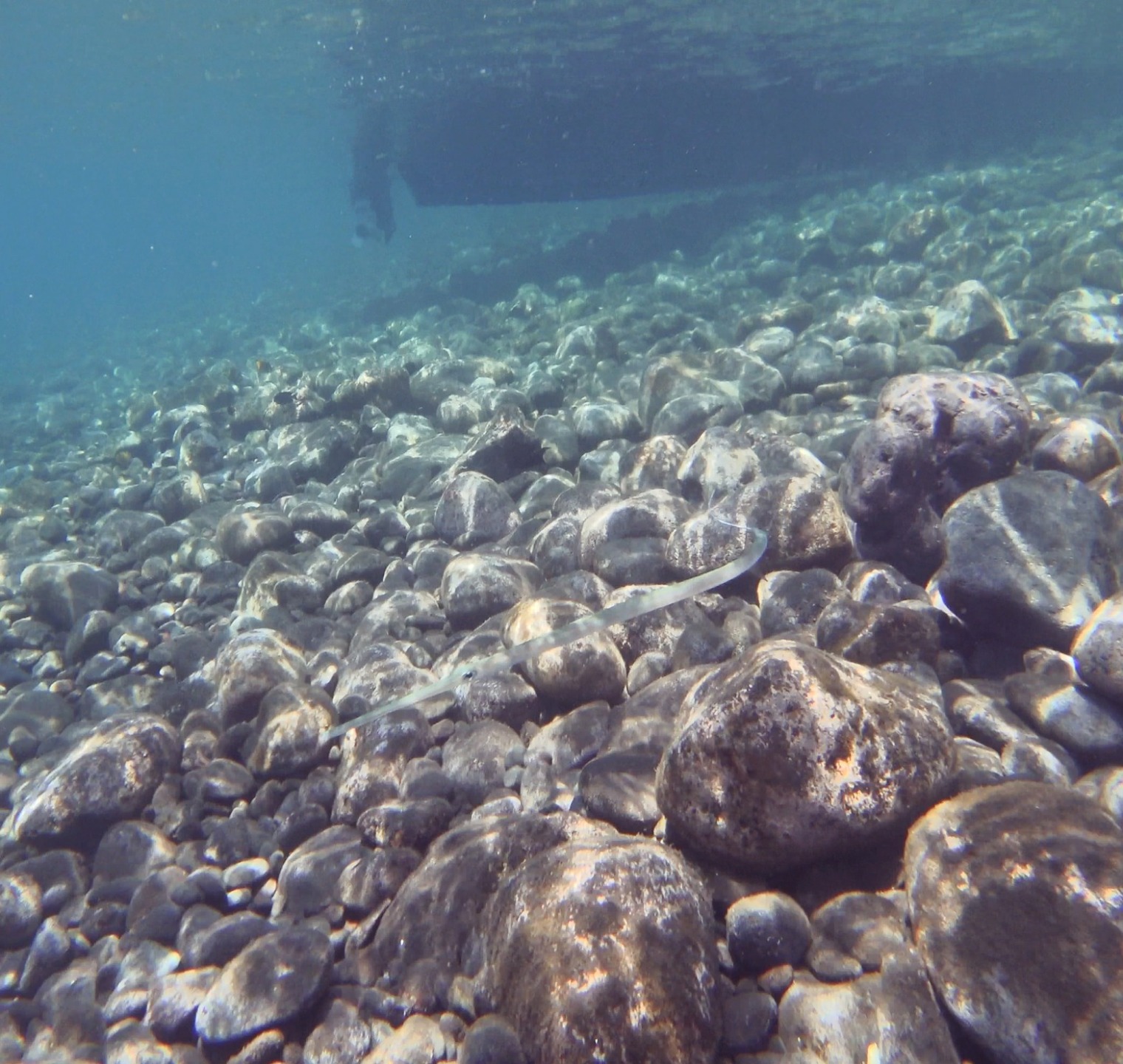 난파선까지 향하는길, 돌아오는 길 선수쪽은 또 먹다이빙 형태를 띄고 있어서 매우 낮은 수심에 다양한 미세 생물이 서식하고 있었네요.