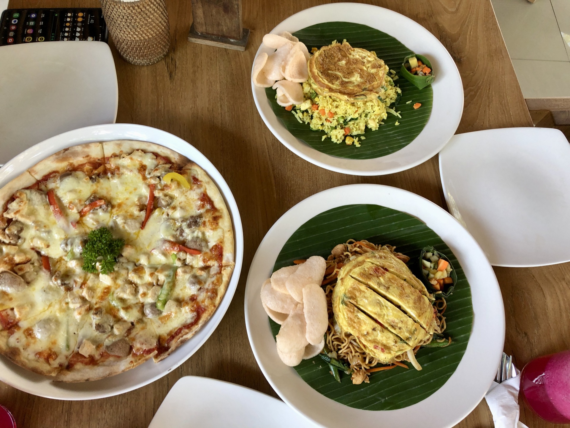 저녁에 따로 시켜먹는 나시고랭, 미고랭 등 음식들까지 모두 맛있었습니다. 단점은 식사가 대체로 비싼편이예요.