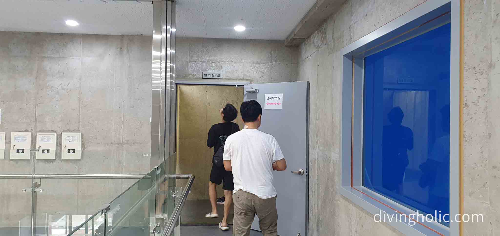 젖은 슈트(수영복)을 입고 이동시 엘리베이터 이용을 금지합니다.(계단 이용)